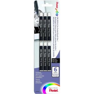 • Pentel Arts Pocket Brush Refills, Black Ink, Pack of 6 (FP10BP6A)