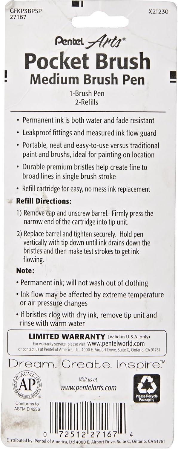 Pentel Arts Pocket Brush Pen, Includes 2 Black Ink Refills (GFKP3BPA)