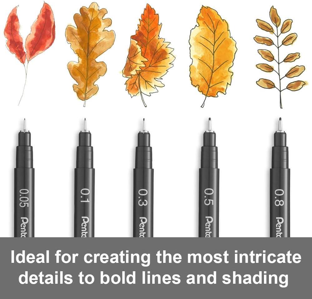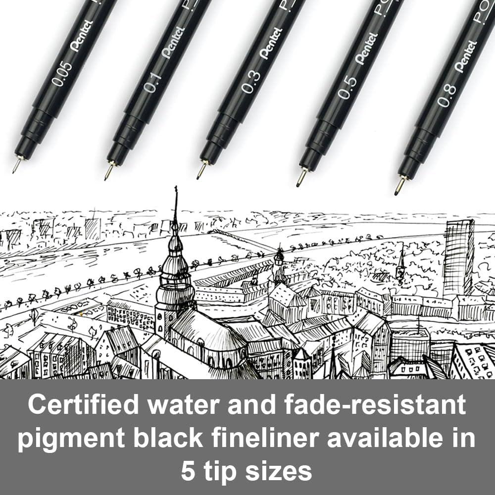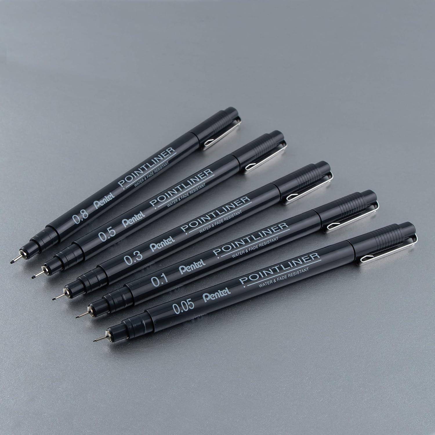 • Pentel Arts Pointliner Drawing Pen, 5-Pack, Assorted Sizes, Black Ink (S20PBP5A)