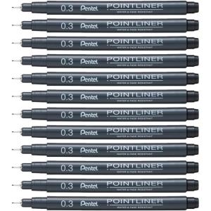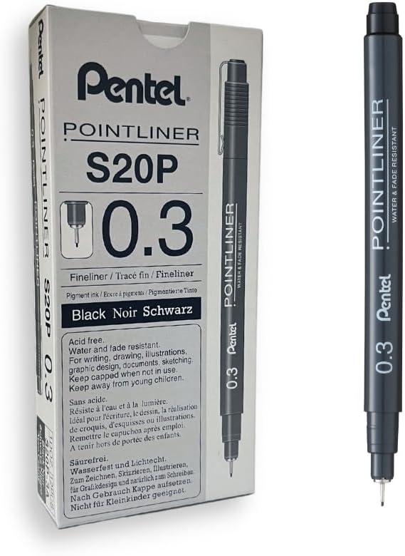 • Pentel Arts Pointliner Drawing Pen, 0.3mm, Black Ink, Box of 12 Pens (S20P-3A)(12 Count (Pack of 1))