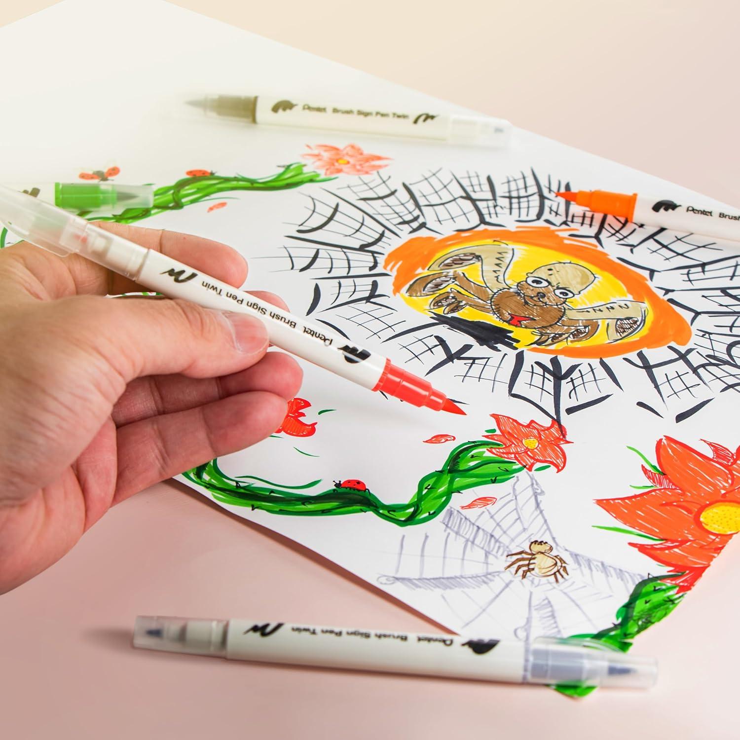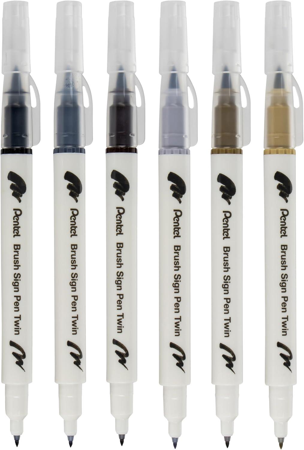 Pentel Arts Sign Pen Twin Brush, Pack of 6 Pens, Black Hues (SESW30CPC6-1)