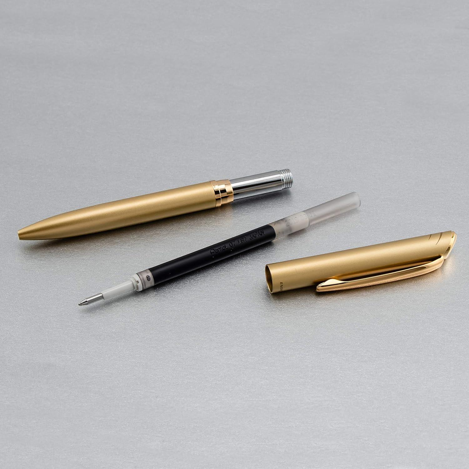 Pentel EnerGel Style Gel Pen, (0.7mm) Medium Line, Black Barrel – BL2007AABX(Gold)