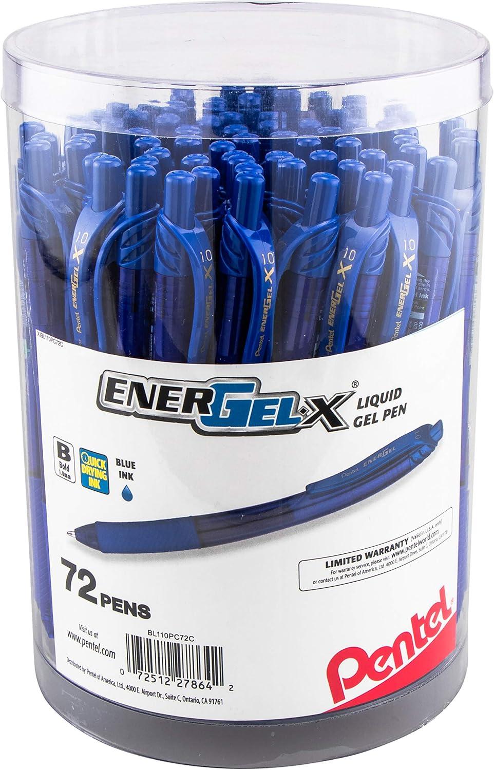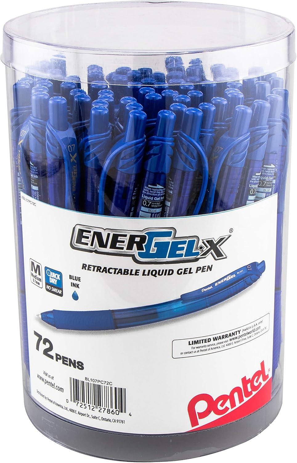 • Pentel EnerGel-X Retractable Gel Pen, (0.7mm) Med. Line, Blue Ink, 72-PK Canister (BL107PC72C)(Blue)