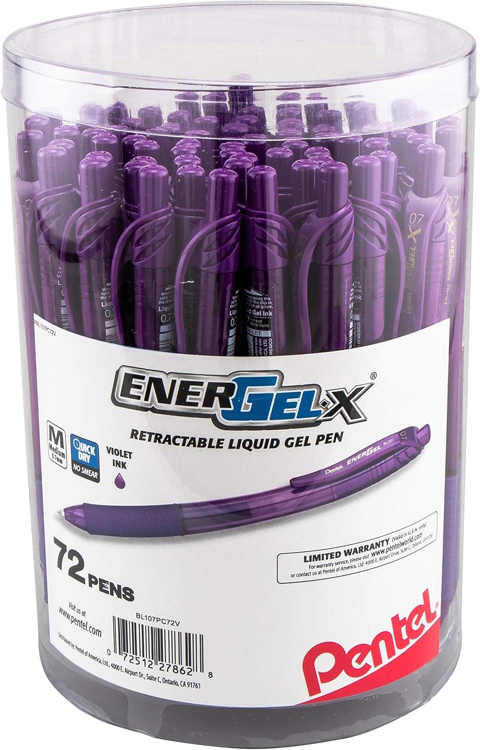 Pentel EnerGel-X Retractable Gel Pen, (0.7mm) Med. Line, Blue Ink, 72-PK Canister (BL107PC72C)(Violet)