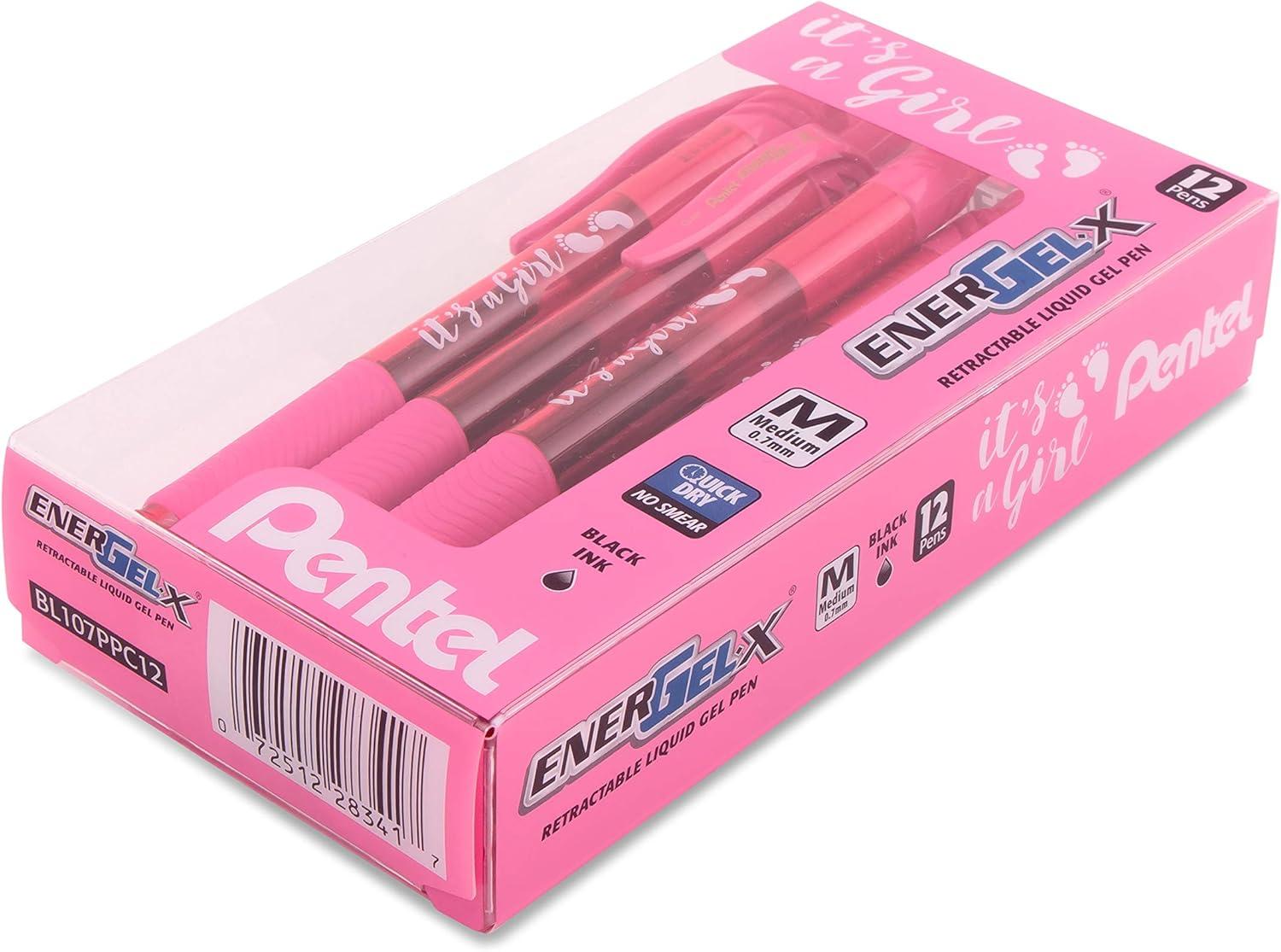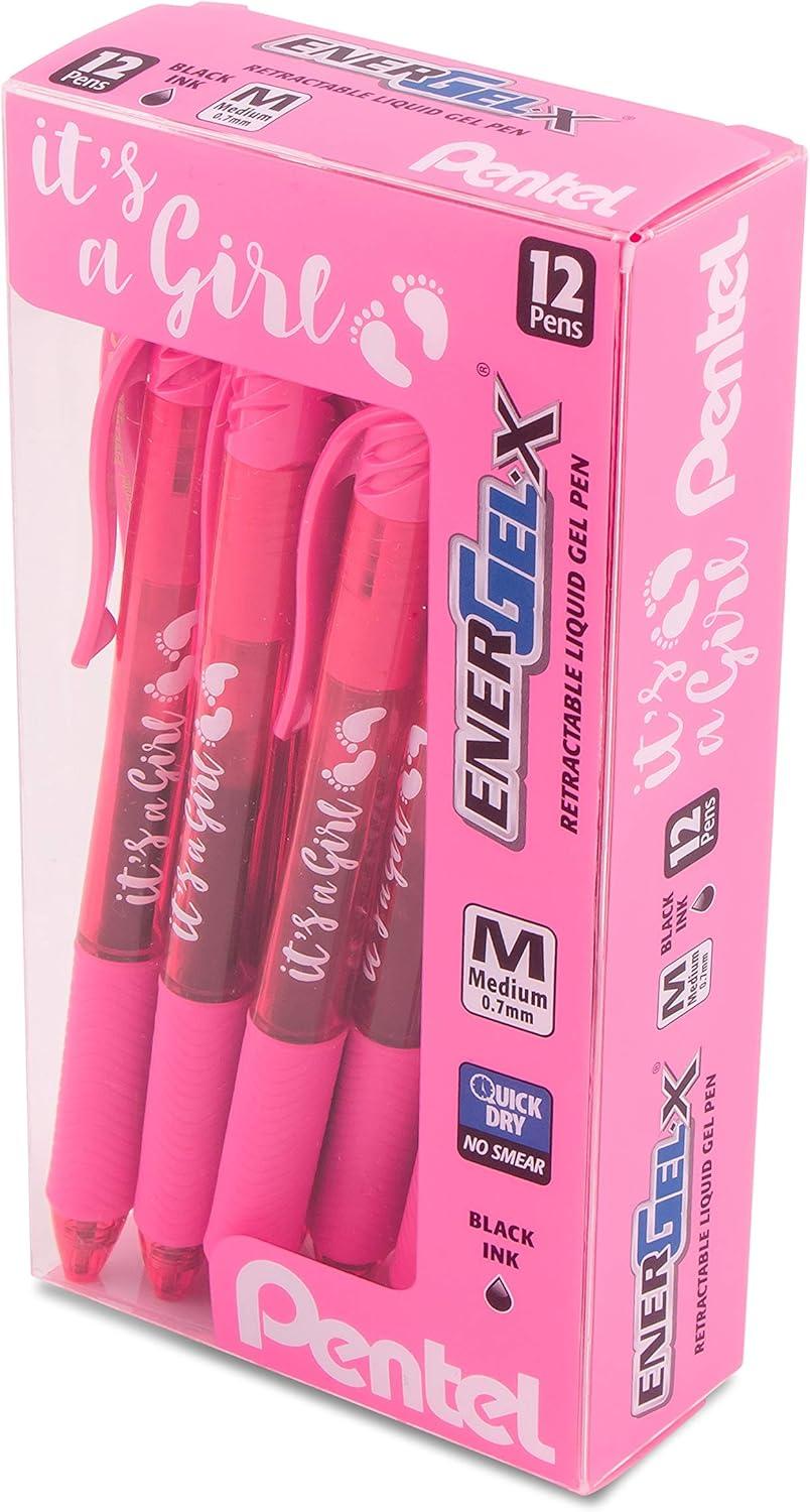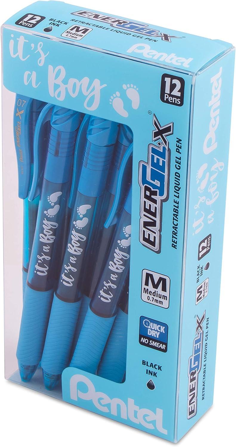 Pentel EnerGel-X Retractable Gel Pen, (0.7mm) Med. line, Sky Blue Ink- It’s a Boy! Dozen Box (BL107SPC12)(Girl)