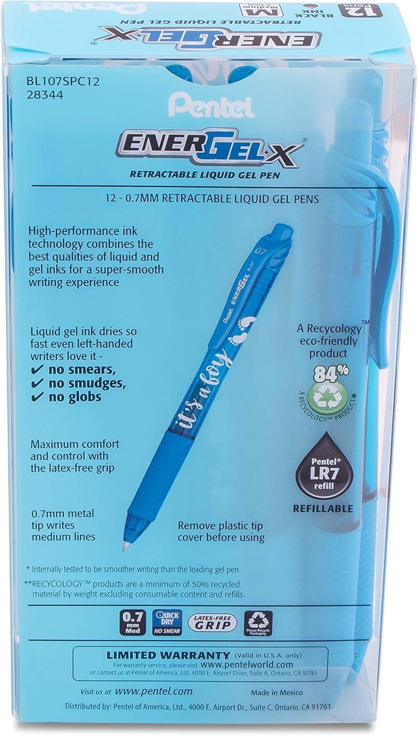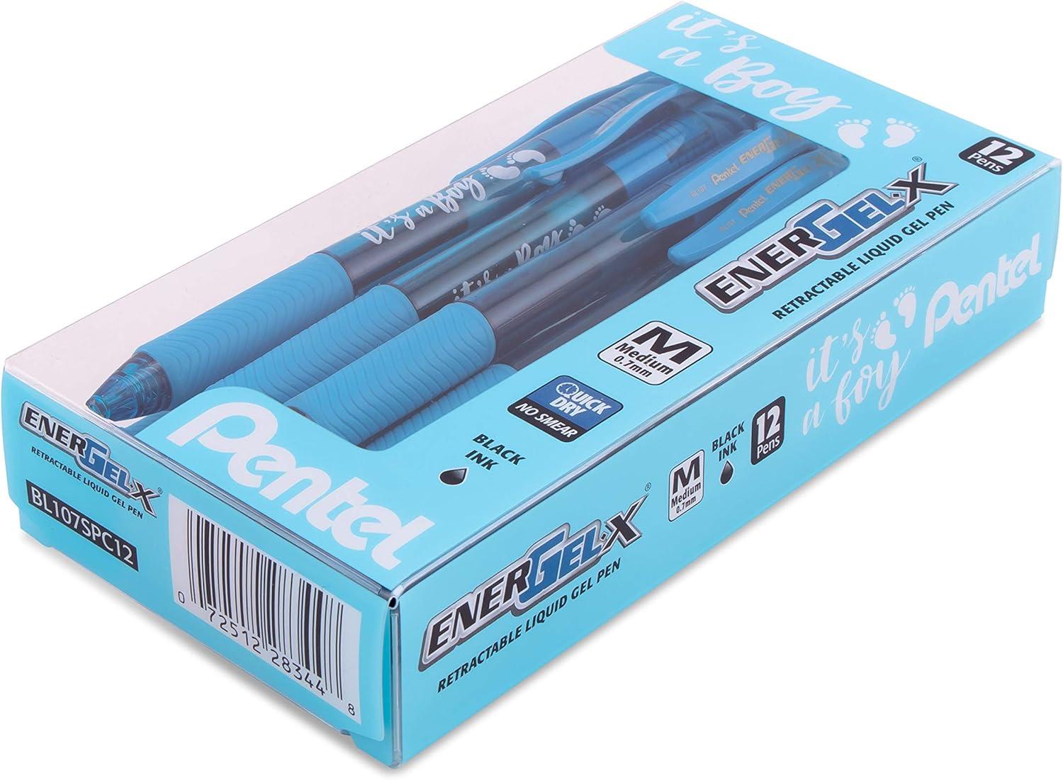 • Pentel EnerGel-X Retractable Gel Pen, (0.7mm) Med. line, Sky Blue Ink- It’s a Boy! Dozen Box (BL107SPC12)(Girl)