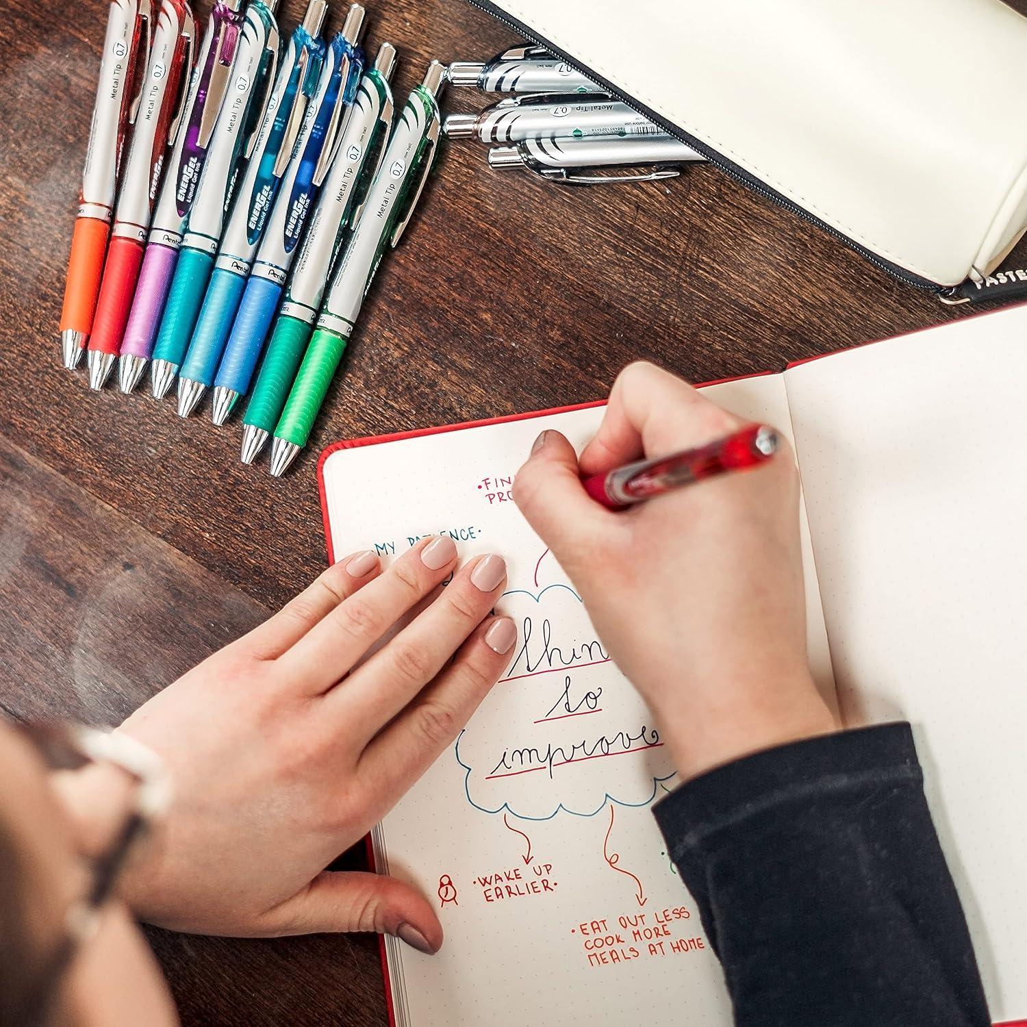 EnerGel liquid gel ink is a high performance ink technology that combines the best qualities of liquid and gel ink for a super smooth writing experience. Liquid ink characteristics provide an easy flowing ink supply, while gel ink characteristics include smoothness of writing, vibrant colors and fast-drying capability.