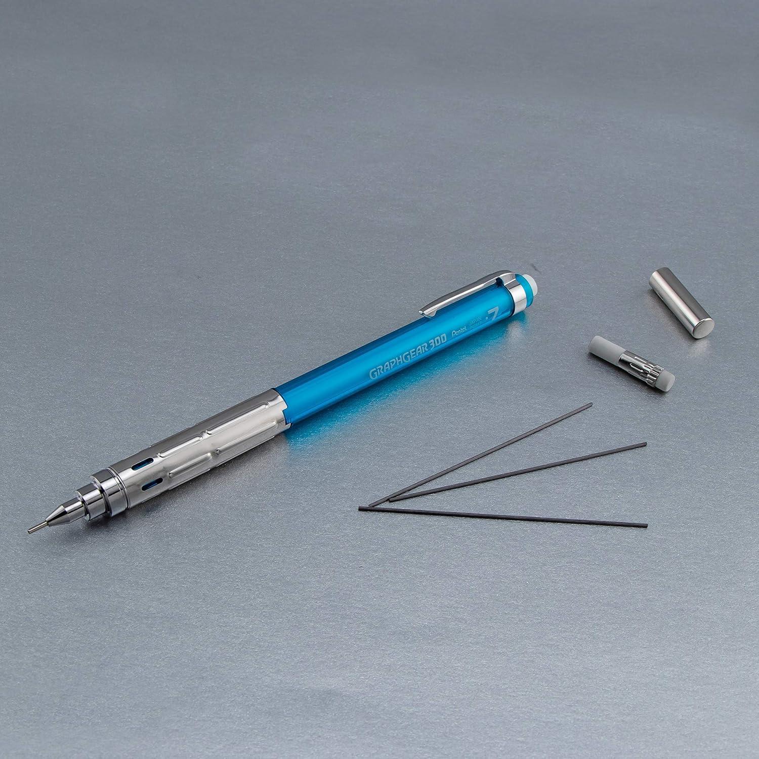 Designed to last a lifetime, the Pentel GraphGear 300 delivers professional-grade performance at an entry-level price. The sturdy metal clip and grip sections are designed for comfort and durability, while the 4mm fixed lead sleeve prevents breaks and preserves lead. The Pentel GraphGear 300 is available in bold, vibrant translucent barrel colors, with lead sizes from 0.3mm to 0.9mm. GraphGear is backed by Pentel’s limited lifetime warranty.