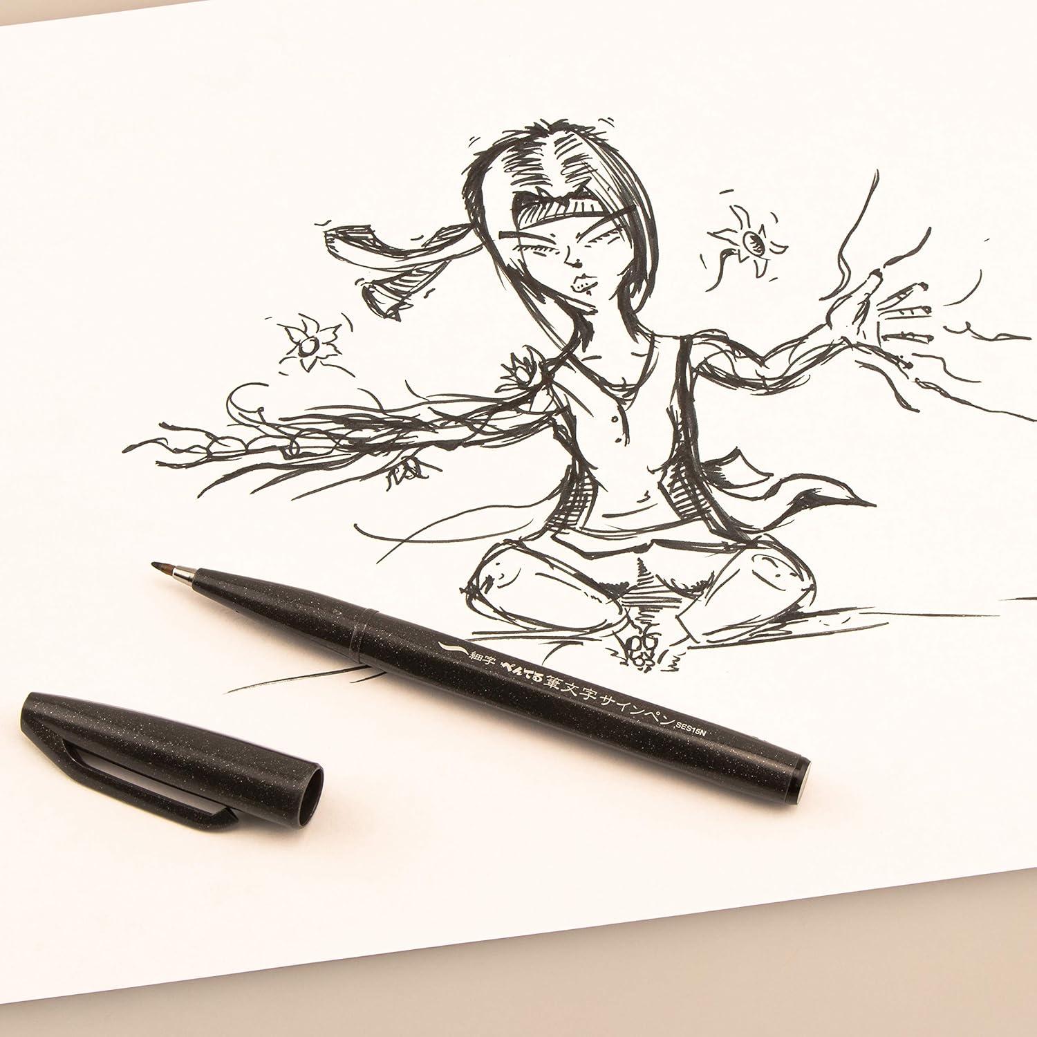 The richly saturated colors are fully blendable with water and other Sign Pen Brush colors. Tip can be diluted with water to get a full range of values. Great for a variety of techniques, including feathering, cross-hatching, outlining, calligraphy and detailed line work. Wear resistant, pressure sensitive, flexible tip. Will not dry out if left uncapped and can be cleaned with a paper towel