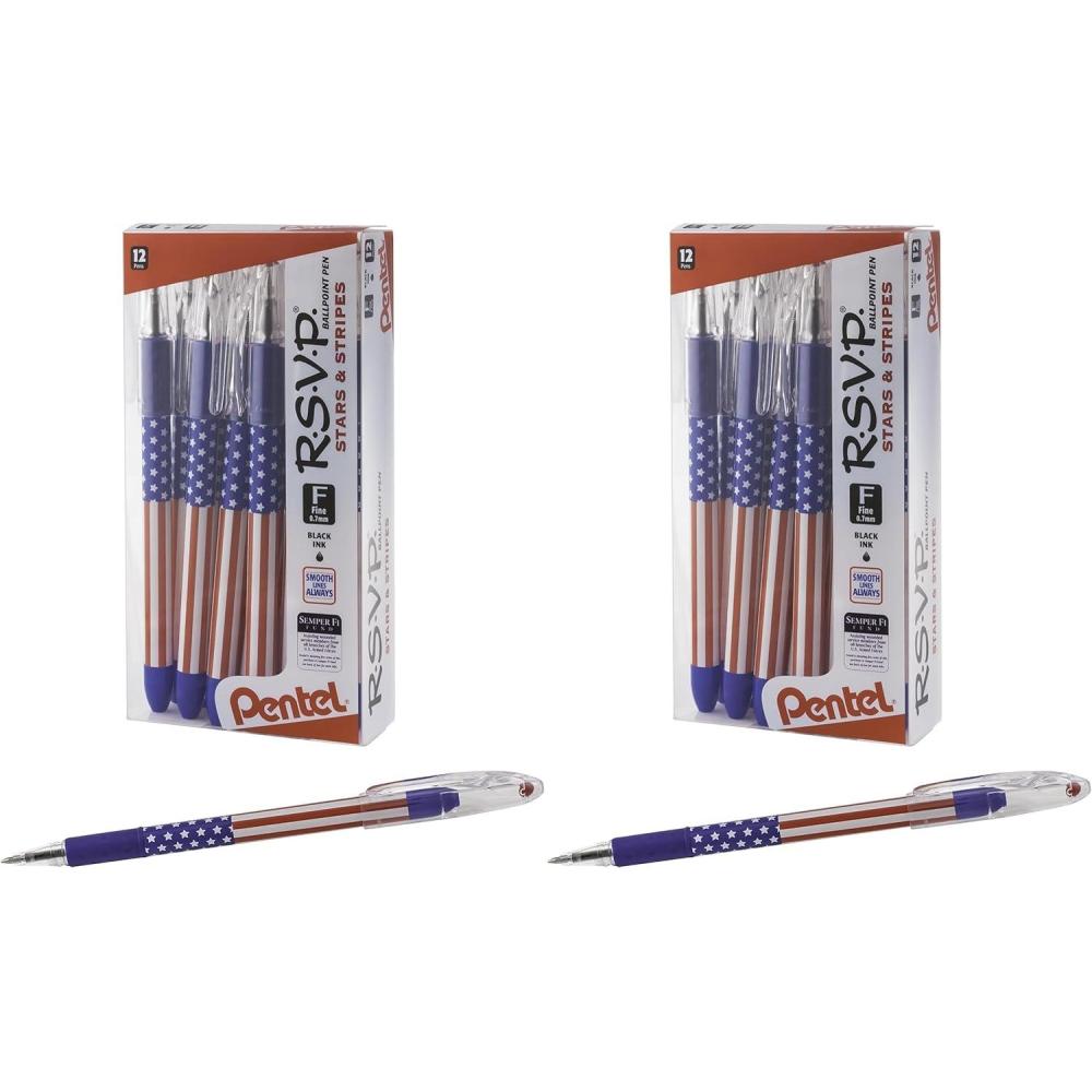 Pentel BK90USAA R.S.V.P. Stars & Stripes Ballpoint Stick Pen, Black Ink, Fine, Dozen(12 Count (Pack of 2))
