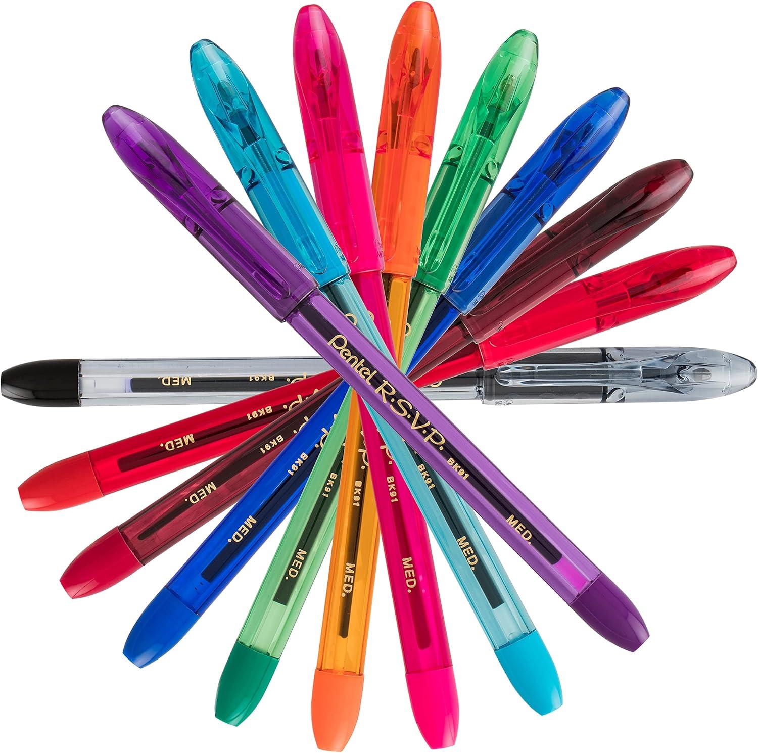 Pentel BK91CRBP8M R.S.V.P. Stick Ballpoint Pen, 1mm, Assorted Barrel, Assorted Ink, 8/Set(Black Ink)