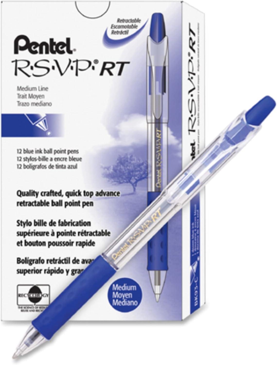 The Pentel RSVP RT ballpoint pen is a sturdy, well-balanced pen. This retractable pen is designed for extended periods of use. The exclusive Comfort Zone, latex-free grip is designed to reduce writing fatigue. The durable stainless steel tip delivers a consistent line without skipping. The 1. 0mm tip writes medium lines. The transparent barrel allows you to see the ink supply and the longer barrel design holds more ink than the competition – allowing you to write for almost a mile! Uses the BKL10 refill, which is available in a variety of colors. All RSVP RT pens include Pentel’s Limited Lifetime .