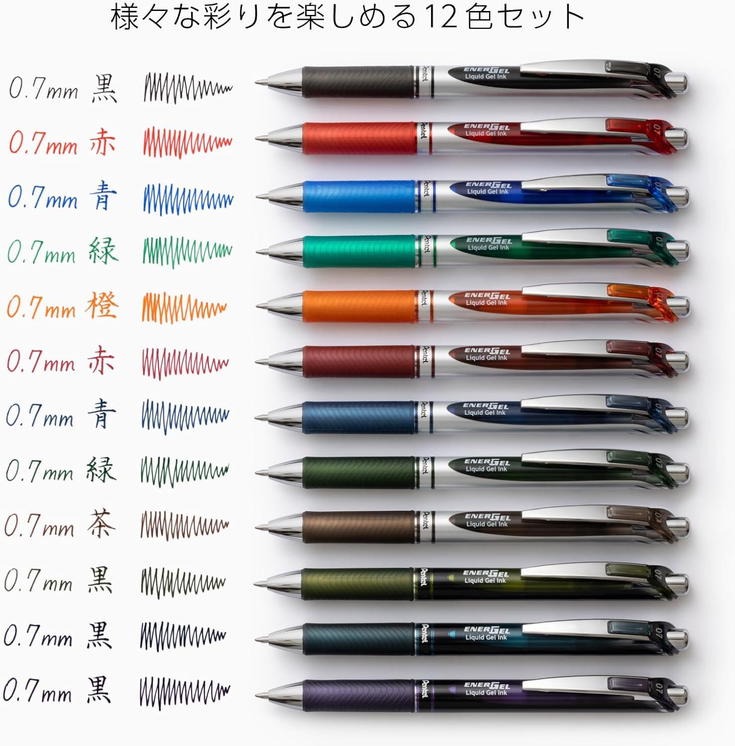 Pentel BL77-12AMZ EnerGel Ballpoint Pen, 0.7mm, 12 Colors Set(12 colors)