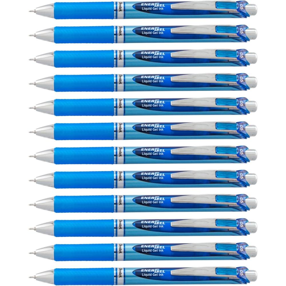 Pentel® EnerGel™ Deluxe RTX Retractable Liquid Gel Pens, Fine Point, 0.5 mm, 54% Recycled, Blue Barrel, Black Ink, Pack Of 12 Pens(Blue)