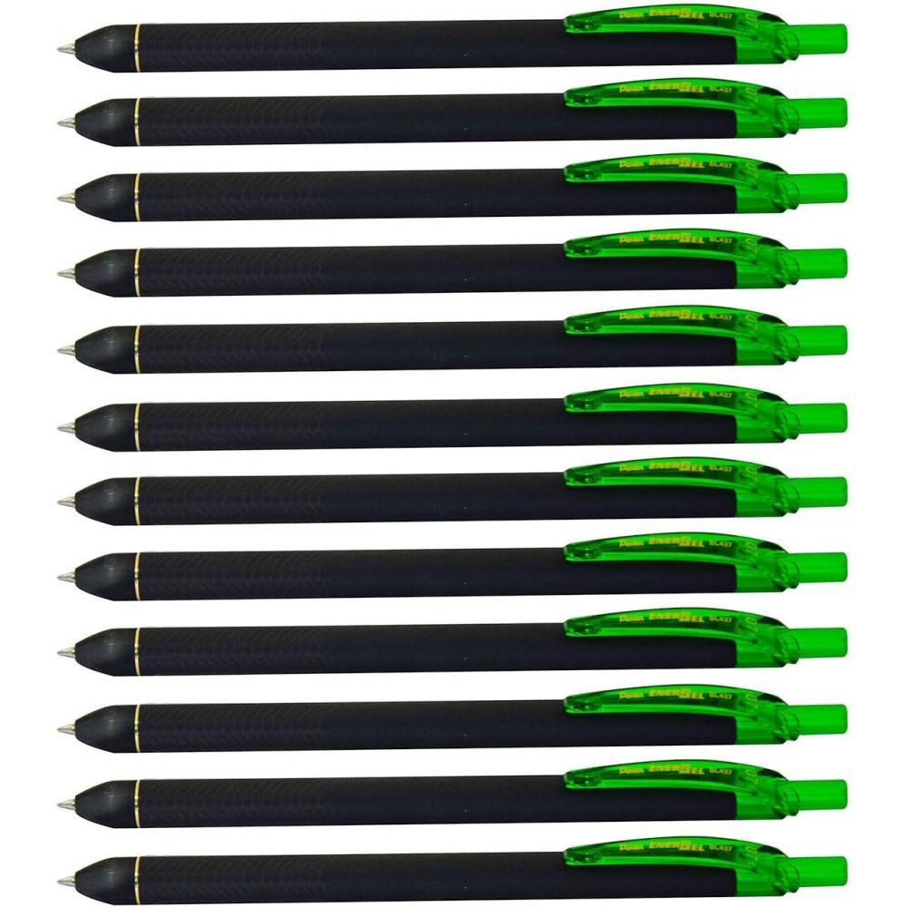 Pentel EnerGel Kuro Liquid Gel Pen, (0.7mm) Medium line, Black Ink, 12 Pack (BL437R1-A)(Lime Green)