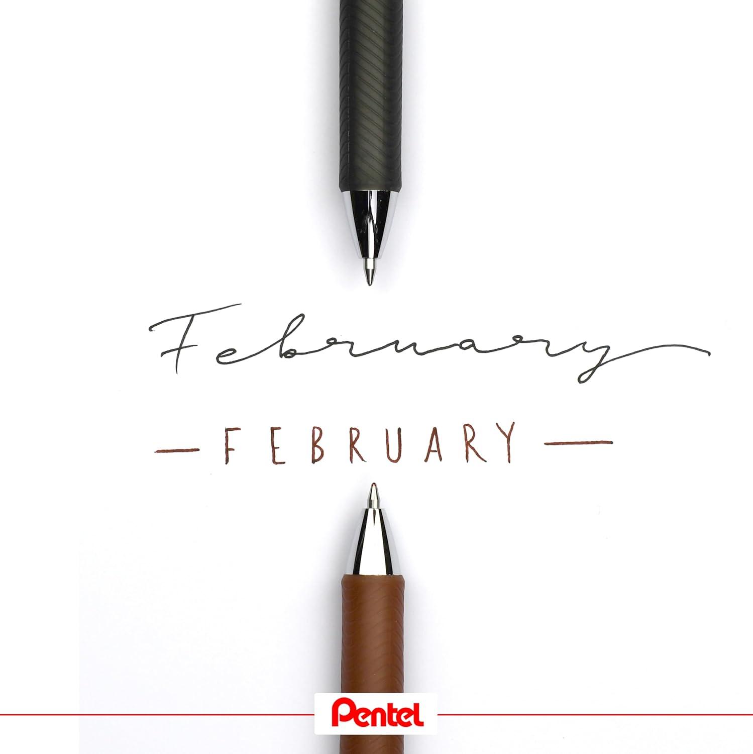 Pentel EnerGel Retractable Liquid Gel Pens, Medium Point, 0.7 mm, Silver Barrel, 12 Black Ink pens, the Ultimate writing pens, the Best Writing Pens for office, school and journaling, Pack of 12(Brown)