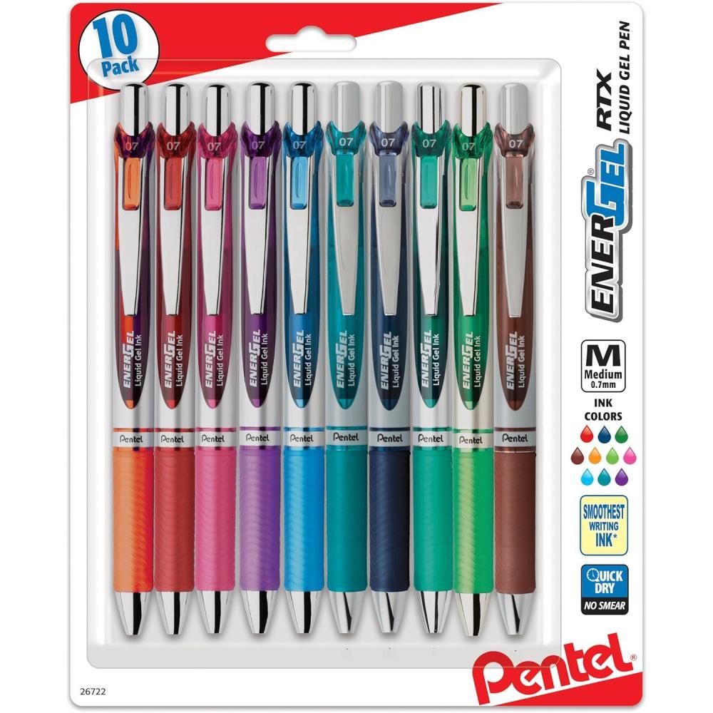 Pentel EnerGel RTX Retractable Liquid Gel Pen, (0.7mm), Medium line, Assorted Ink, Pack of 20 (BL77BP20M)(10 Count (Pack of 1))