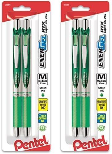 Pentel EnerGel RTX Retractable Liquid Gel Pen, (0.7mm), Medium Line, Metal Tip, Green Ink, Pack of 2 (BL77BP2D)(Green)