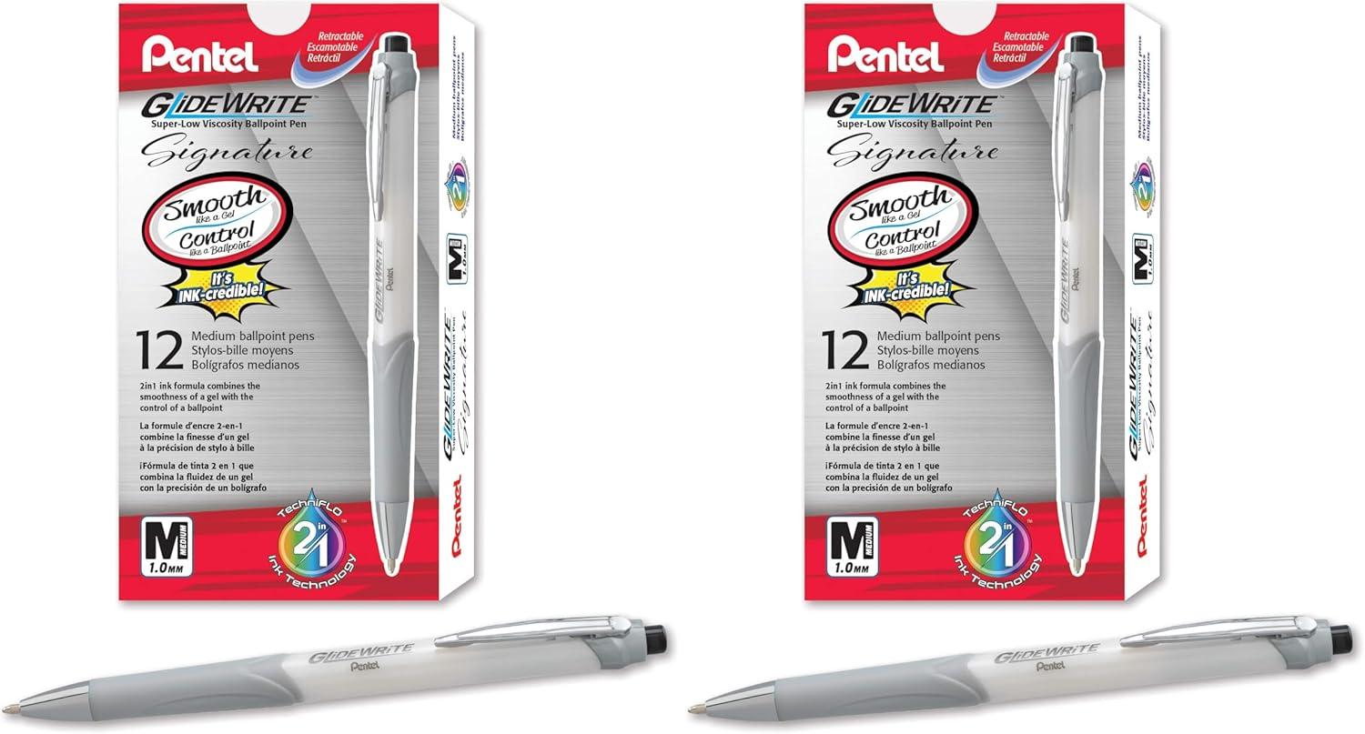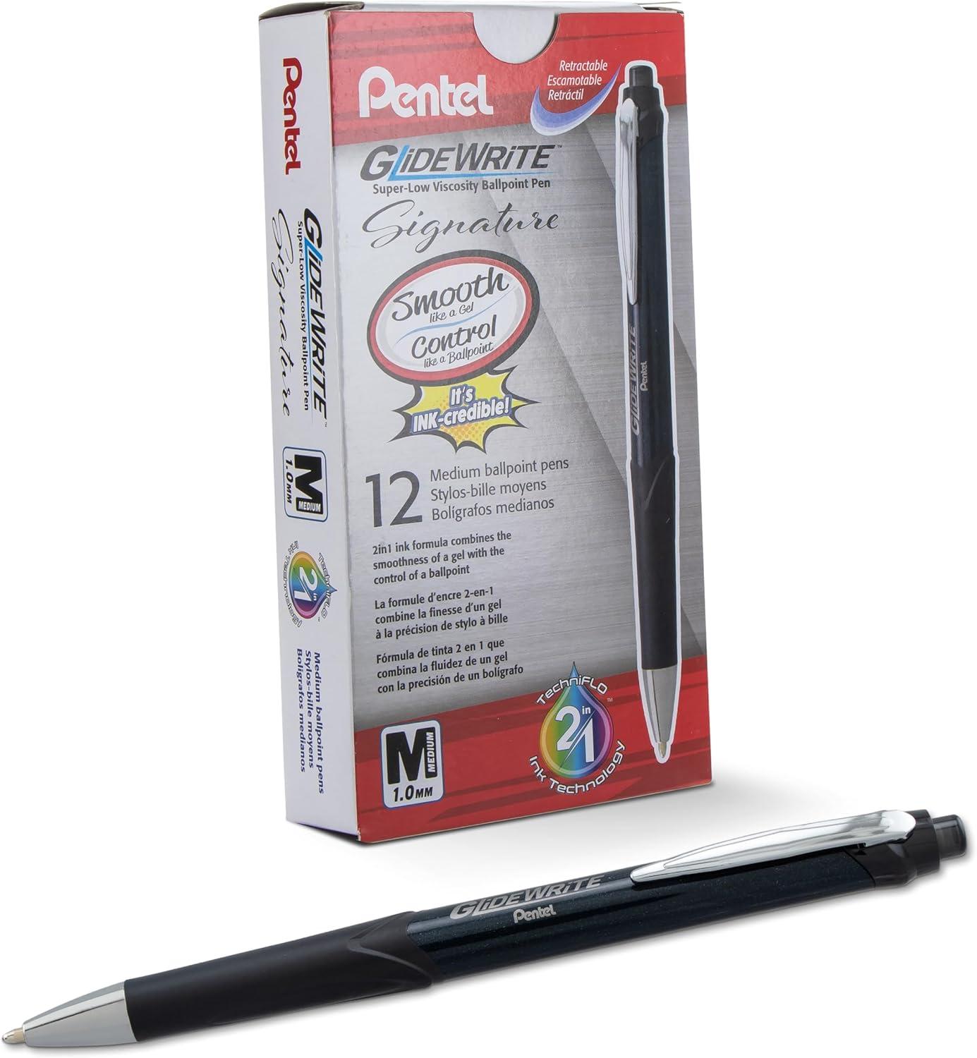 Pentel Glidewrite Signature Ballpoint Pen Black Barrel, (1.0mm) Medium Line, Black Ink, 12 Pens (BX930A-A)(Black)
