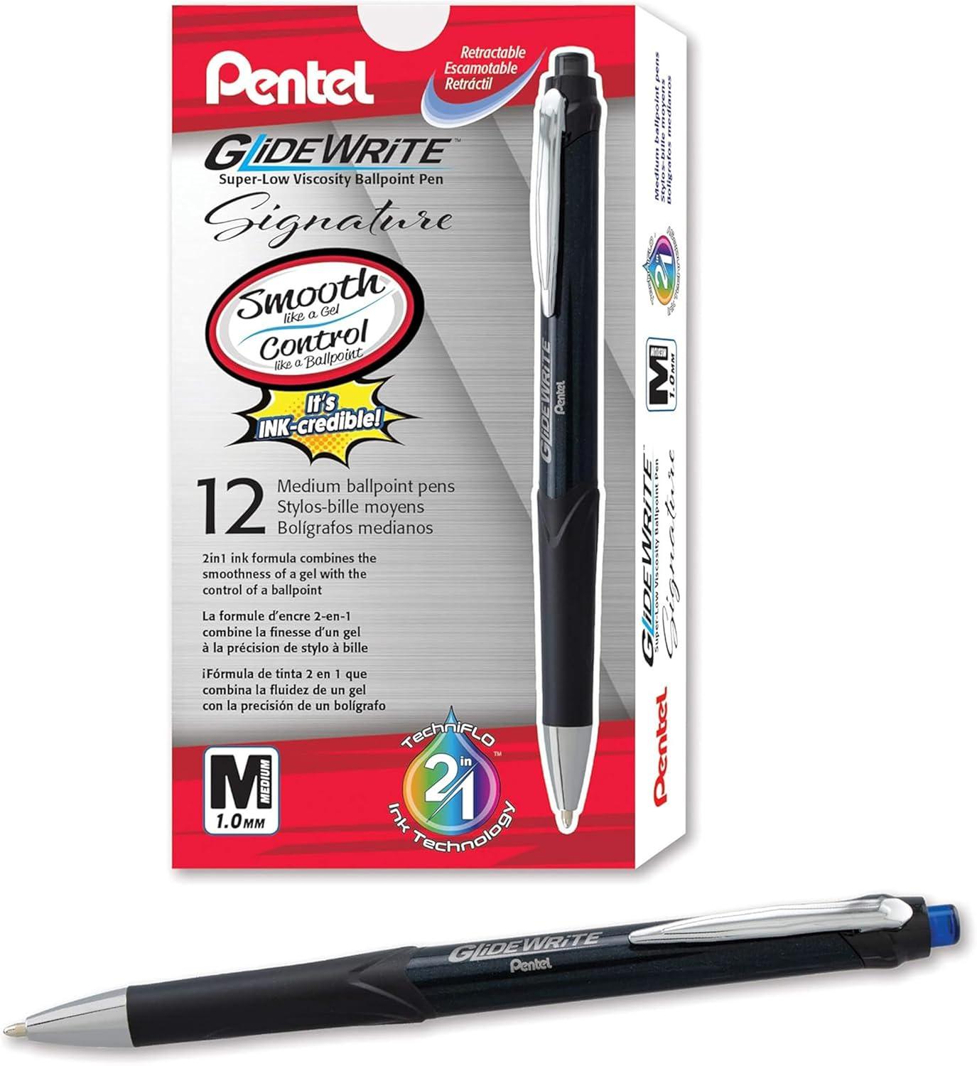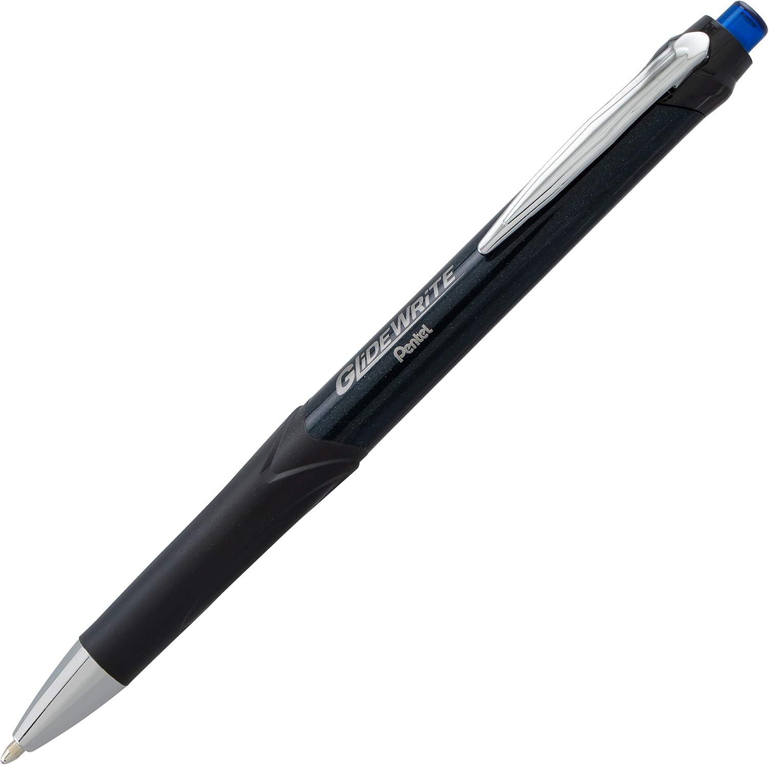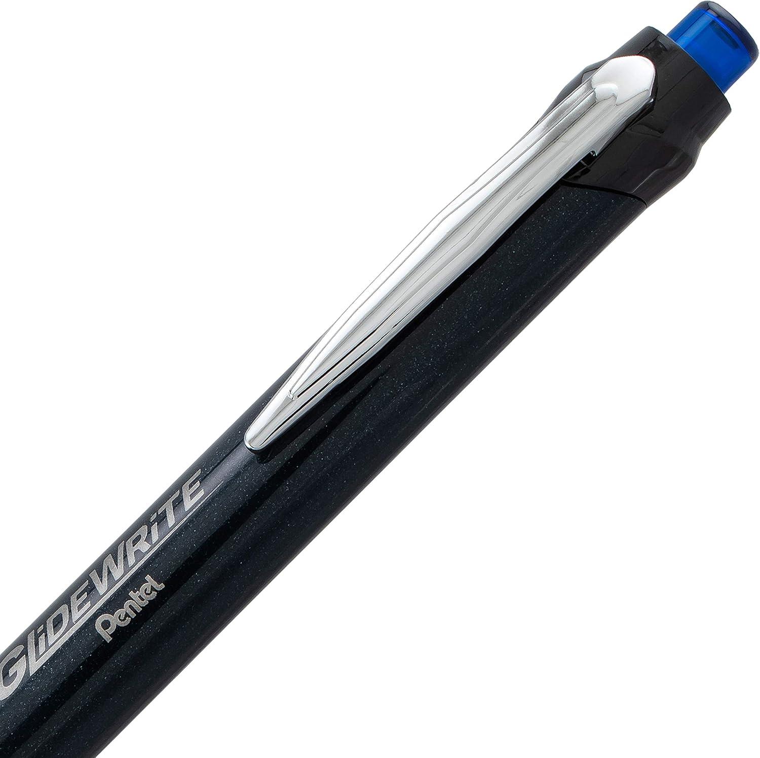 Pentel Glidewrite Signature Ballpoint Pen Black Barrel, (1.0mm) Medium Line, Black Ink, 12 Pens (BX930A-A)(Blue)