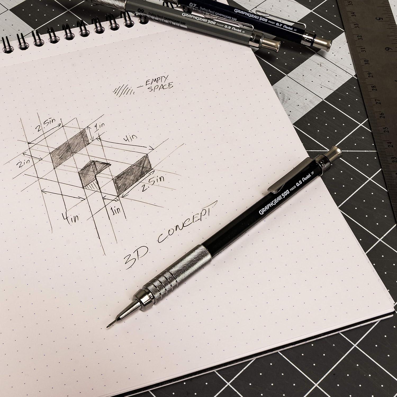 Pentel GraphGear 500 Automatic Pencil Kit, 0.7mm, Refill Leads, Block Eraser 2 Pack (PG527LEBP2)(0.7mm)
