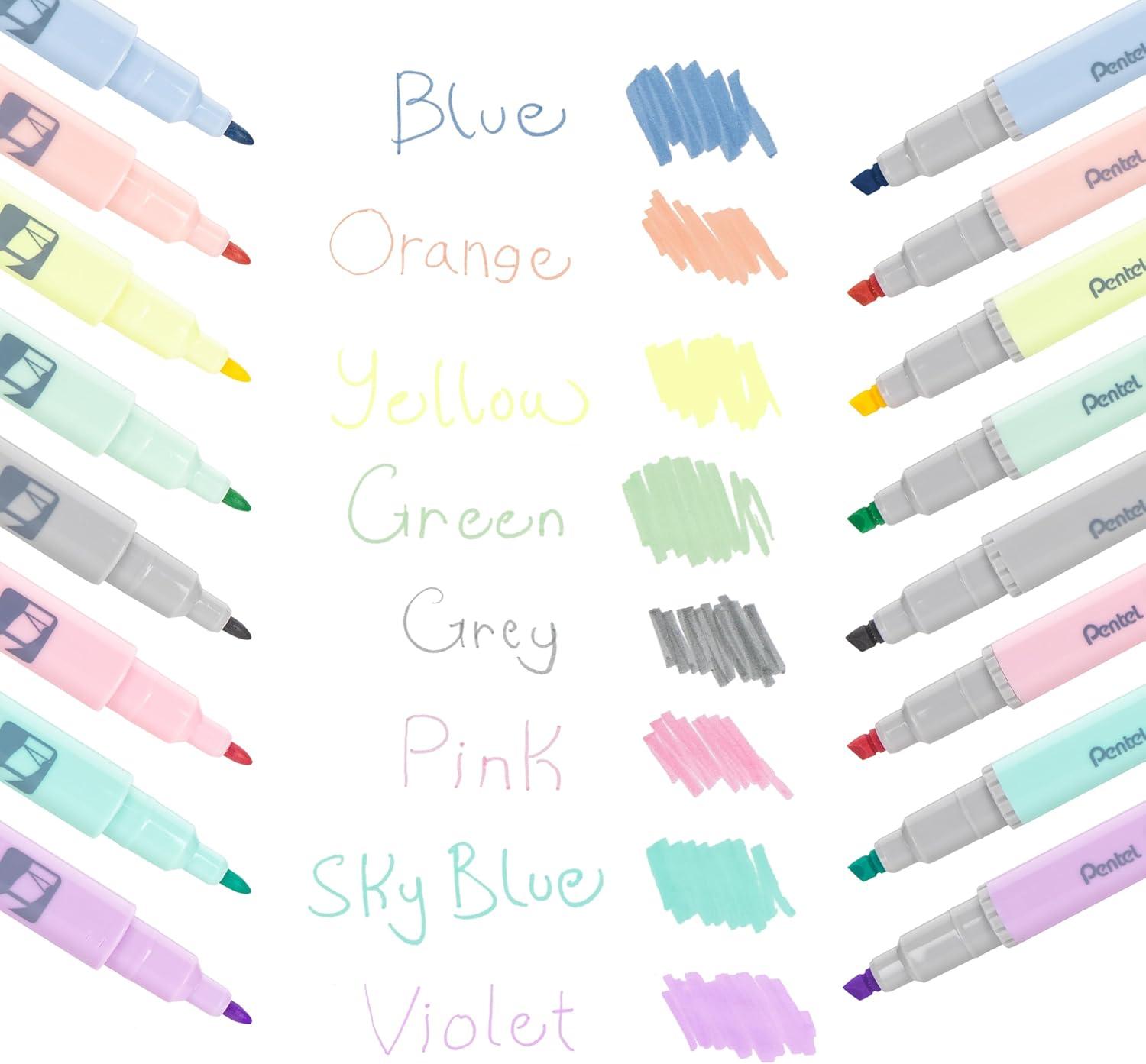 Pentel Illumina Flex Twin Tip Highlighter, Dual-Tip Marker Highlighter, Flex Tip and Chisel, 8 Asstorted Pastel Ink Colors, Pack of 8 (SLW11P-8E)