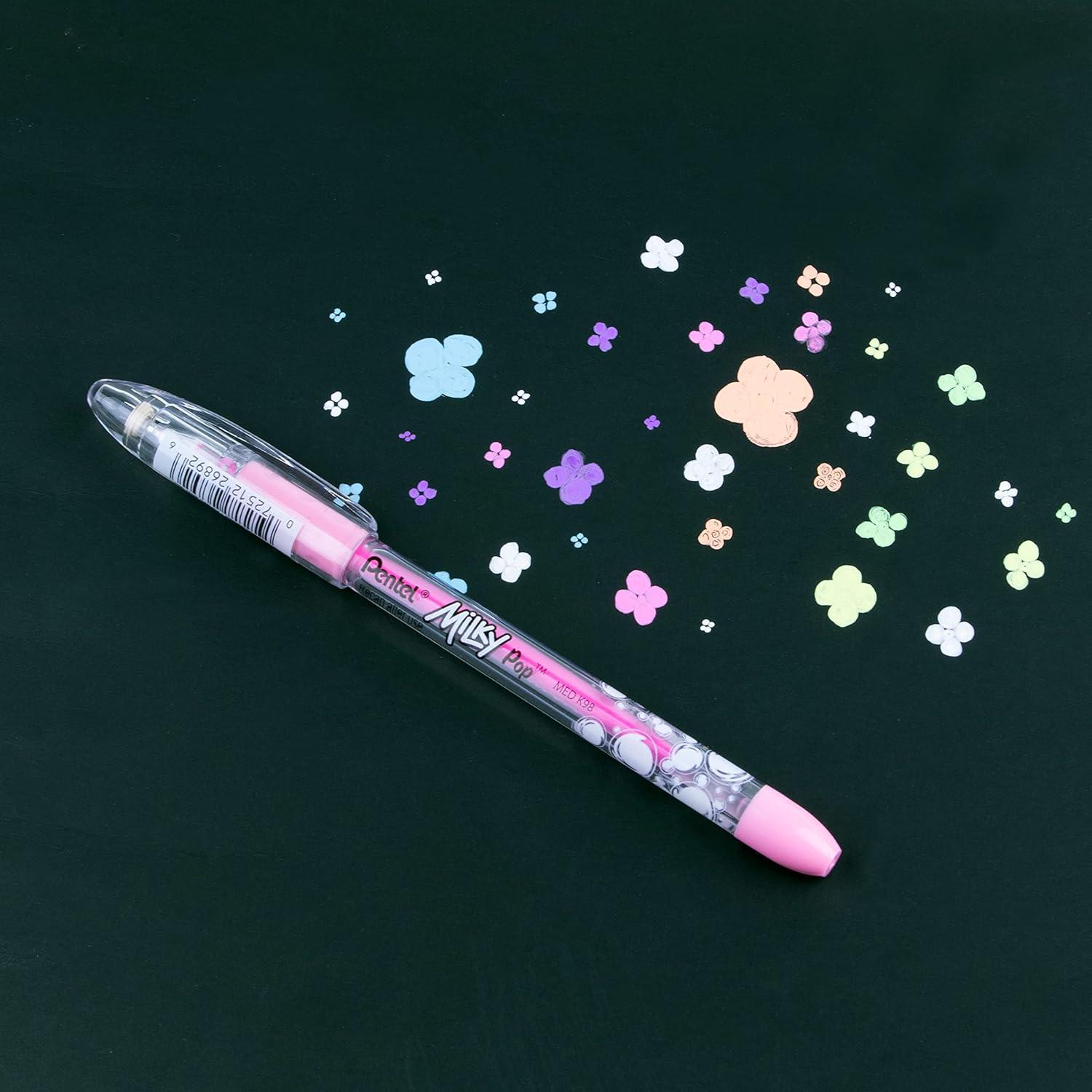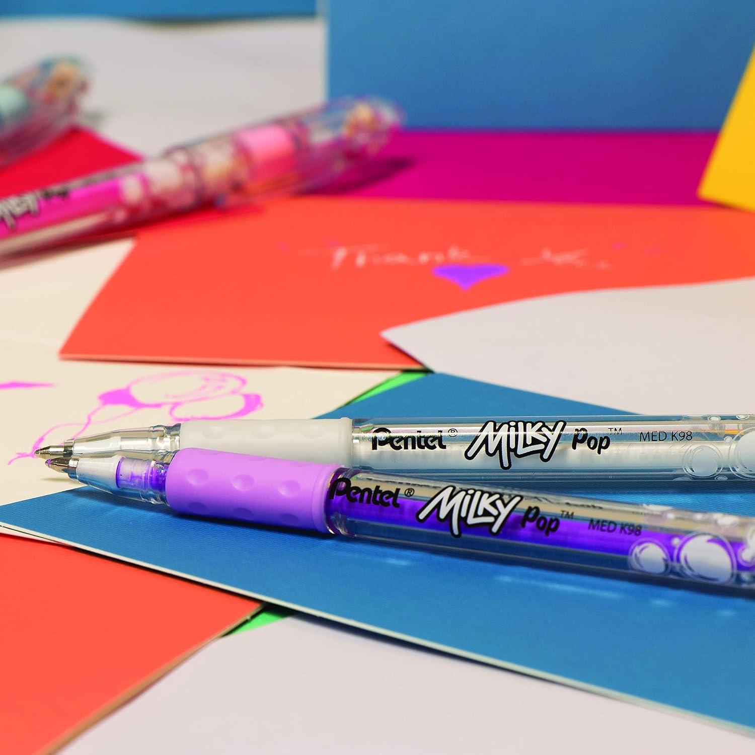 The Pentel milky POP beauty gel pens add a “POP beauty” of color to any page. Milky pastel colors work on light or dark colored paper to make your writing and artwork stand out. Smooth gel ink and extra-long balanced barrel for effortless writing and control. Latex-free grip for comfortable writing and drawing. 0. 8mm metal tip writes medium lines. Ap certified. Backed by a limited lifetime