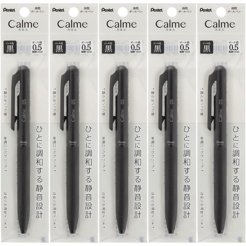 Pentel Oil Based Ballpoint Pen, Calme 0.5mm, Black, Black Ink, 5 Count XBXA105A-A