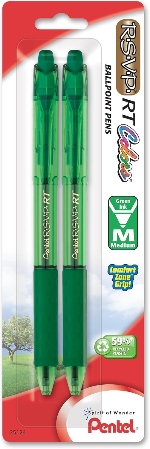 Pentel R.S.V.P. RT Colors New Retractable Ballpoint Pen, Medium Line, Blue Ink, 6 Pack (BK93CRBP6C)(Green)