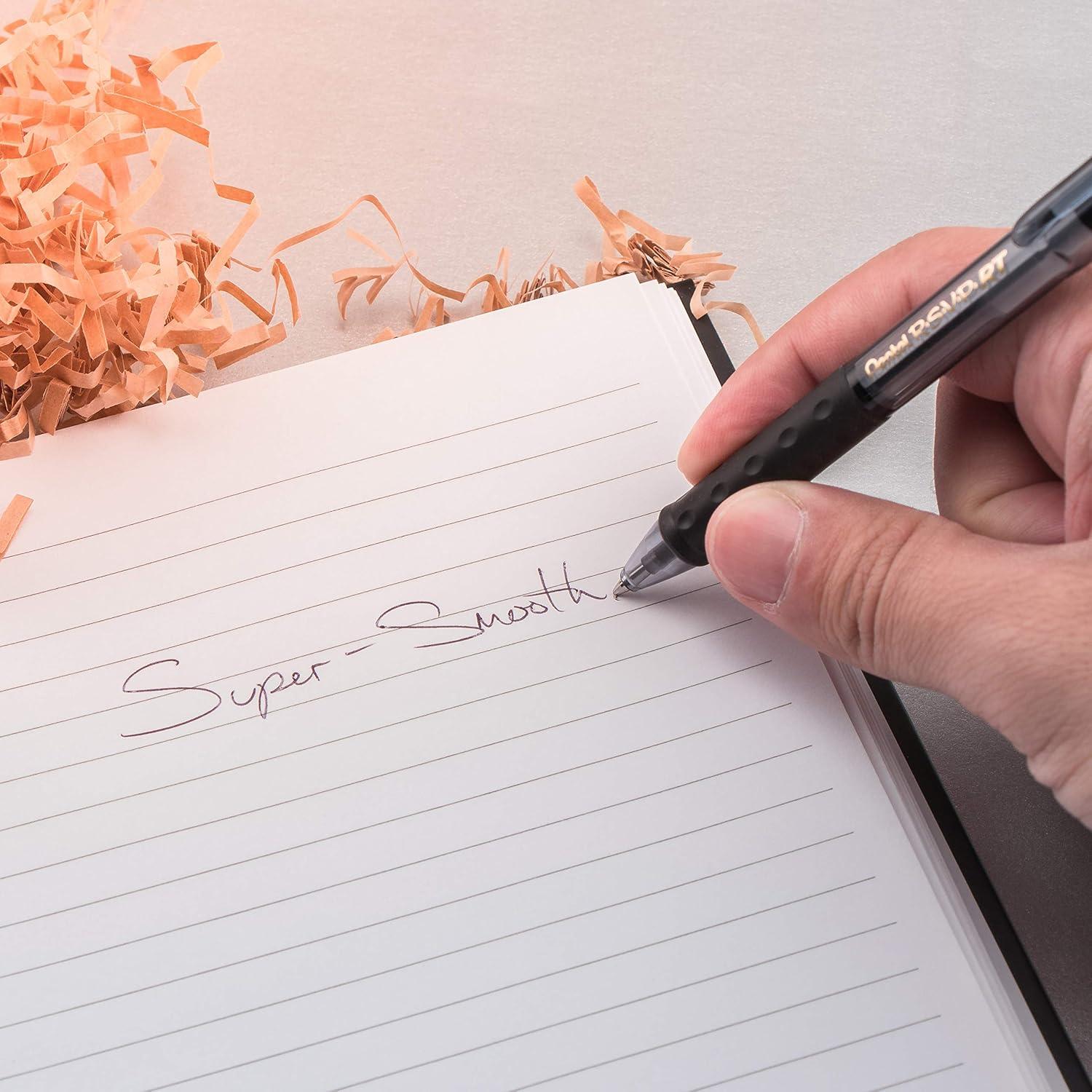 Same qualities as the original Pentel R.S.V.P. “Capped” Version in a “retractable” Form. Soft, latex-free comfort Zone grip for precise control. Striking barrel colors add personality. Retractable tip protects pockets and purses. 1.0 mm tip creates crisp, medium lines. Part of the Recycology line and made of 59% recycled plastic. Refillable with Pentel BKL10 refills.