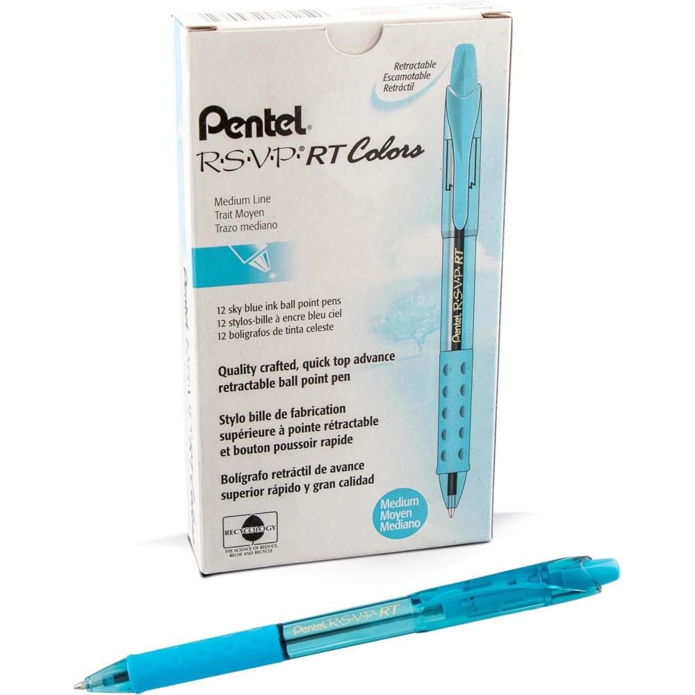 Pentel R.S.V.P. RT Colors New Retractable Ballpoint Pen, Medium Line, Blue Ink, 6 Pack (BK93CRBP6C)(Sky Blue)