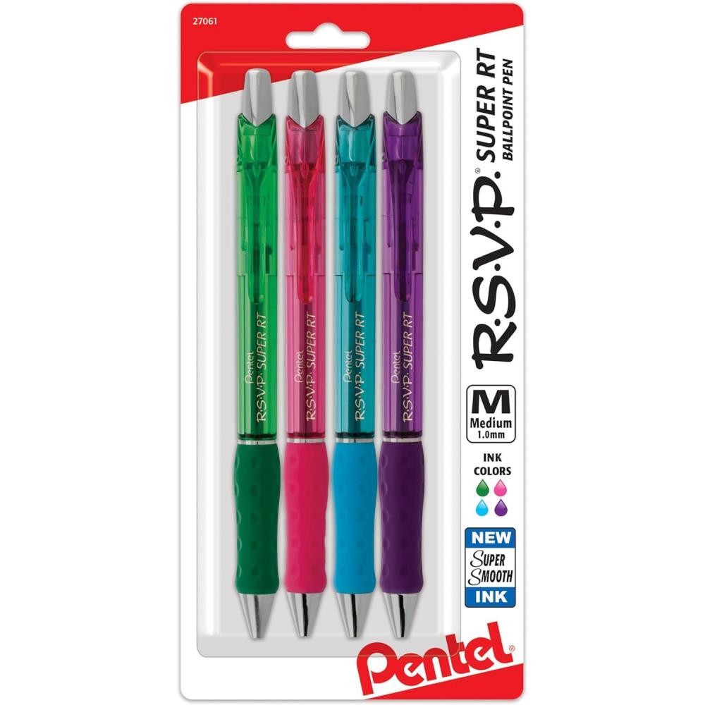 The Pentel® RSVP Super RT retractable ballpoint pen features Pentel’s newest, super-smooth ballpoint ink. The special, low-viscosity ink formula doesn’t drag, blob or scratch offering smoother writing than ever before. The pen includes elegant metal accents and a comfortable, contoured latex-free grip for easy, no-fatigue writing. Sleek barrel design feels great in your hand. Barrel colors match the ink color inside. The 1.0mm tip writes medium lines. Refillable with (BXL10) ink refills. Each pen is backed by a Limited Lifetime Warranty.