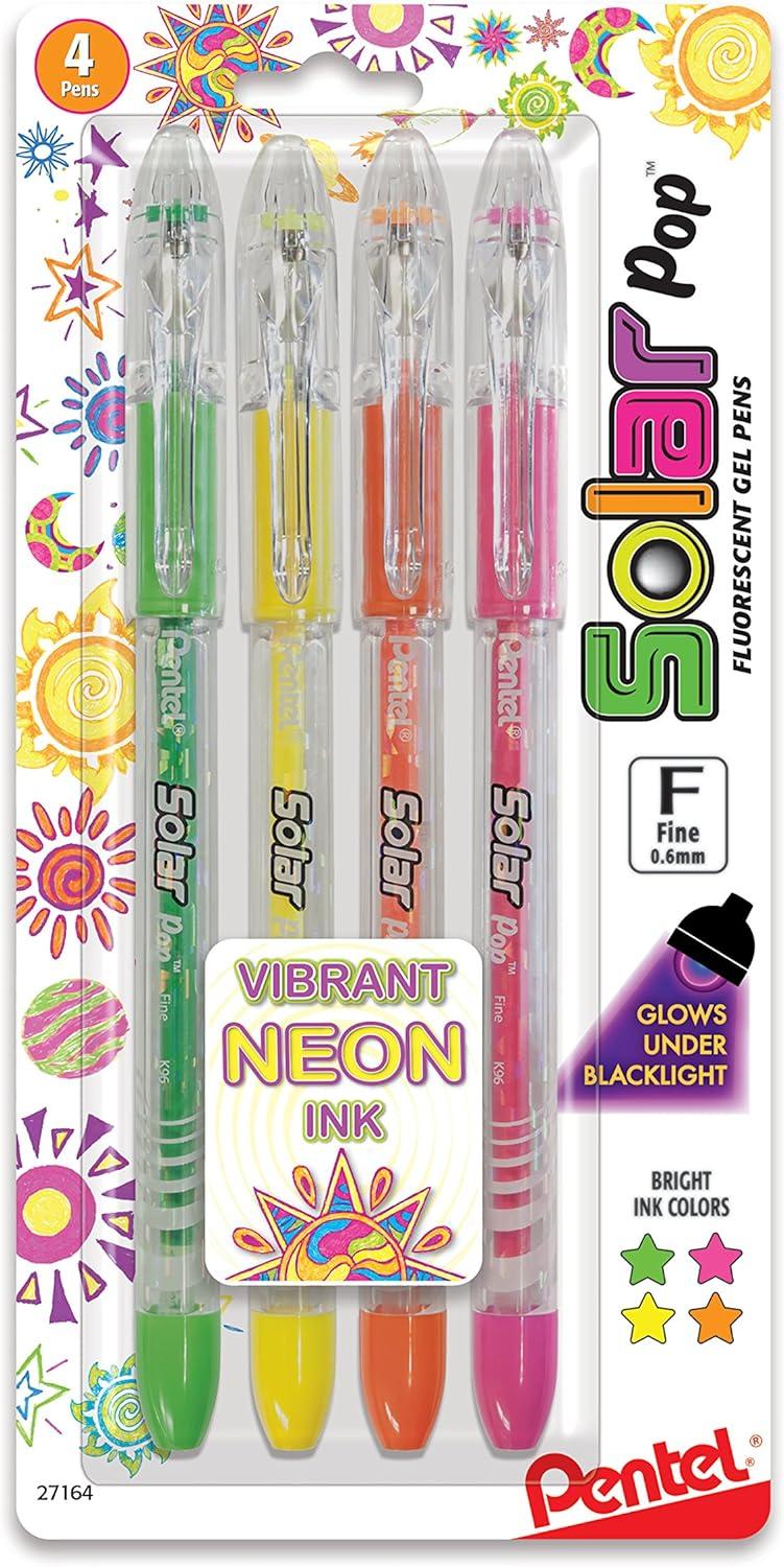 Pentel Solar Pop Neon Gel Pen, 0.6mm Fine Line, Assorted Colors, Pack of 8 (K96BP8M)(4 Count (Pack of 1))