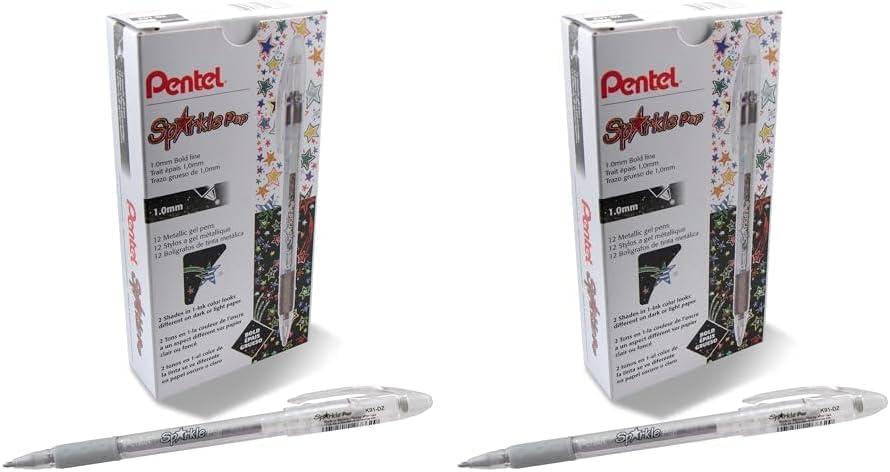 Pentel Sparkle Pop Metallic Gel Pen, (1.0mm) Bold Line, Blue/Green Ink, Box of 12 Pens (K91-DC)(Silver)