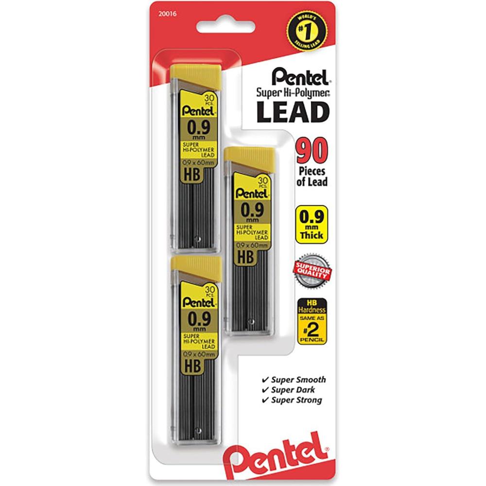 Pentel® Super Hi-Polymer® Leads, 0.9 mm, HB, 30 Leads Per Tube, Pack Of 3 Tubes