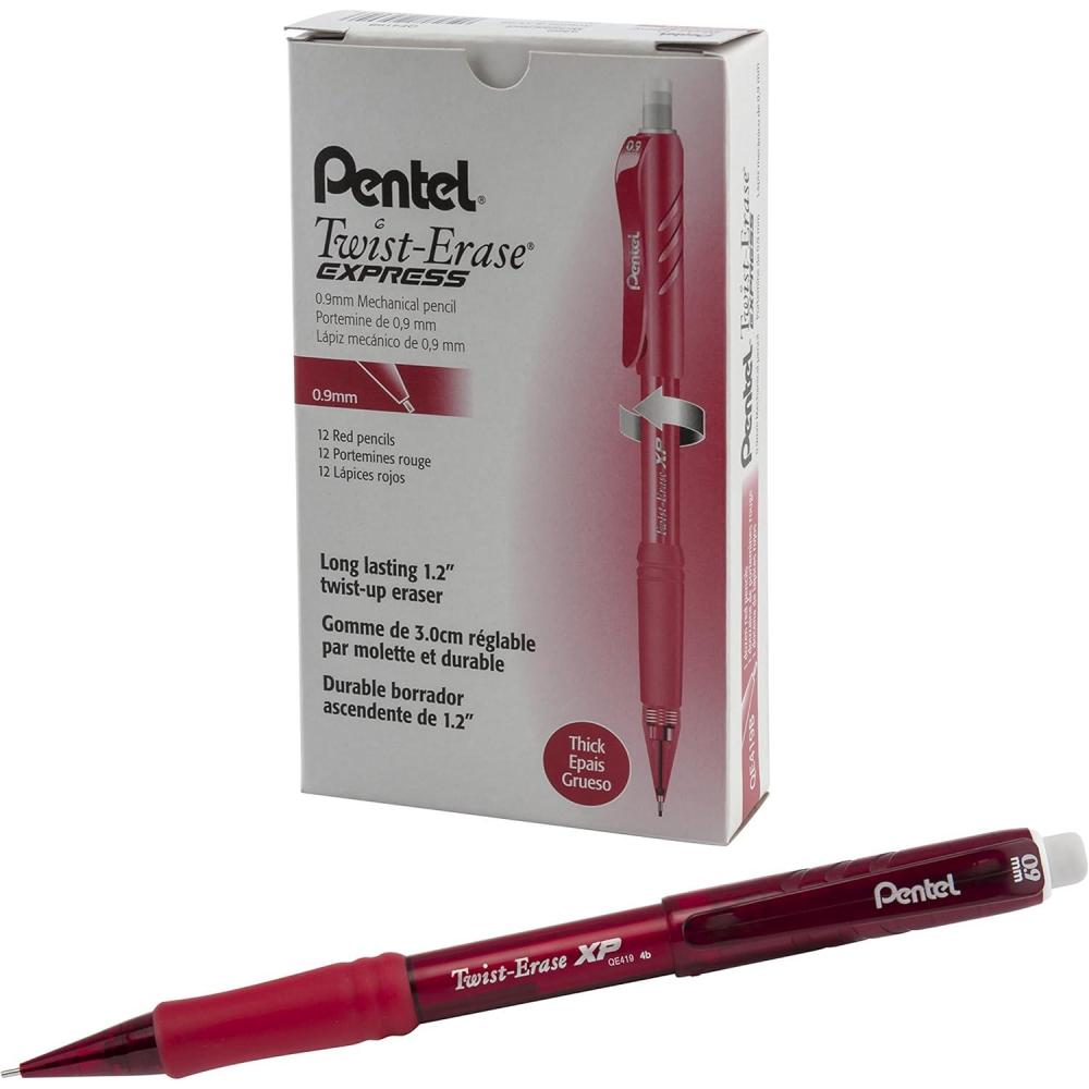 Pentel Twist-Erase EXPRESS Mechanical Pencil 0.9mm, Red Barrel, Box of 12 (QE419B)