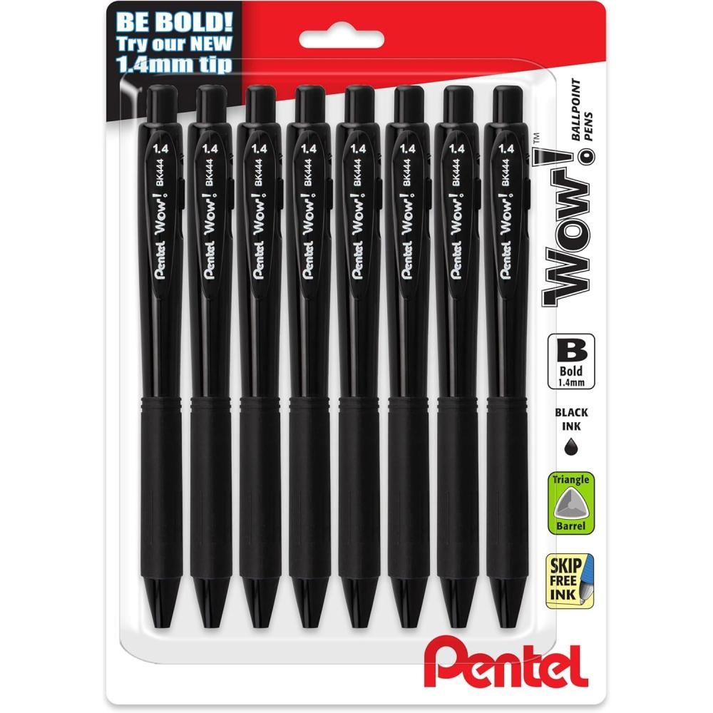 Pentel Wow! Retractable Ballpoint Pen, (1.4mm), Bold Line, Blue Ink, Pack of 8 (BK444BP8C)(Black)