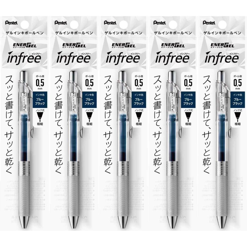 Pentel XBLN75TL-CA EnerGel Ink Ballpoint Pen, 0.5, Blue Black, 5 Pieces(blue black)