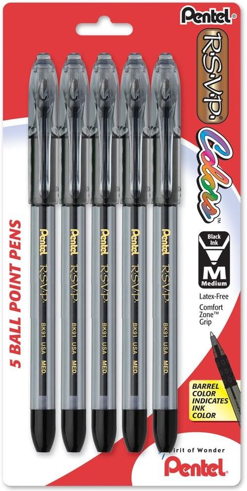 • Pentel R.S.V.P. Colors Ballpoint Pen, 1.0mm, Medium Line, Violet Ink, 5 Pack (BK91CRBP5V) , Black(Assorted)
